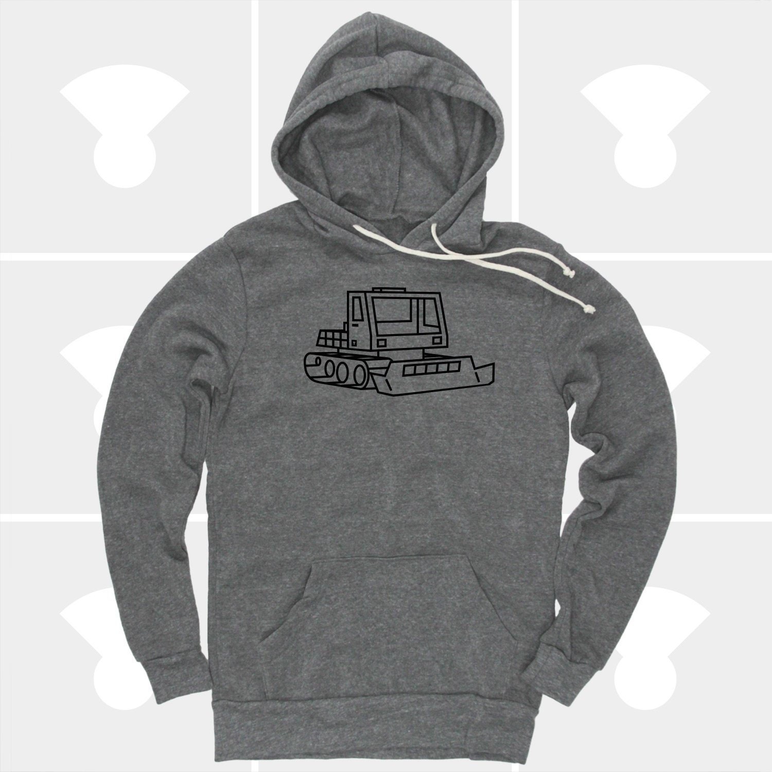Snowcat Pullover Hoodie! Designed & Hand Printed by The Medium Control. This ever-popular fleece pullover hoodie features a drawstring cord hood, kangaroo front pocket, stylish fitted body and comfy fit. Superior Quality Hoodie; Contains: 50% Polyester; 46% Cotton; 4% Rayon; Unisex Fit: Men usually order one size larger than normal; Minimal Shrinkage.